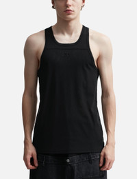 - Misbhv - Double Layered Mesh Tank Top - Double layer mesh construction - U-neckline - Tonal Embroidered logo at center - Sheer finish - Straight hem - Color: Black - Material: 100% Polyamide - See more Tanks and Clothing SIZING - Model wears size M - Model measures: Height 186cm, Chest 35”/89cm, Waist 30.5”/78cm, Hip 35.5”/91cm
