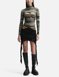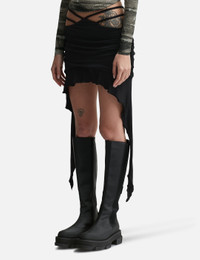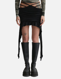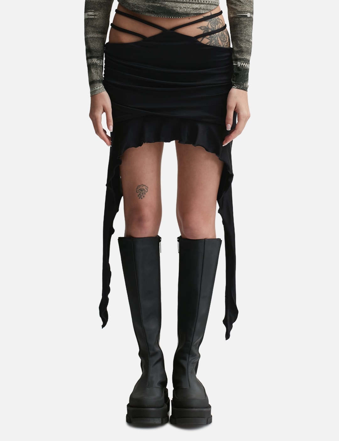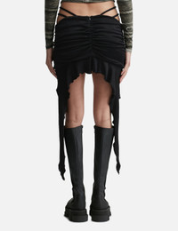 - Misbhv - Ruffled Mini Skirt - Stretchy viscose fabric - Hip straps - Rear zip closure - Gathered details at front and rear - Color: Black - Material: 95% Viscose, 5% Elastane - See more Skirts and Clothing SIZING - Model wears size S - Model measures: Height 175cm, Chest 33”/83.8cm, Waist 23”/58.4cm, Hip 34”/86.4cm