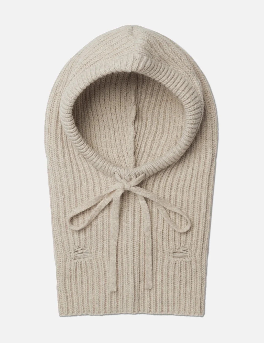 - MM6 Maison Margiela - Distressed Wool Balaclava - Wool blend balaclava beanie - Created through artisanal weaving processes - Drawstring style - Brand numeric signature on the back - Color: Beige Melange - Material: Wool, Polyester - See more Hats and Accessories - Size S - Crown Height: 47cm - Circumference: 46cm - Size M - Crown Height: 47cm - Circumference: 48cm - Size L - Crown Height: 47cm - Circumference: 50cm - Vendor Code: S52TB0008M13138806M