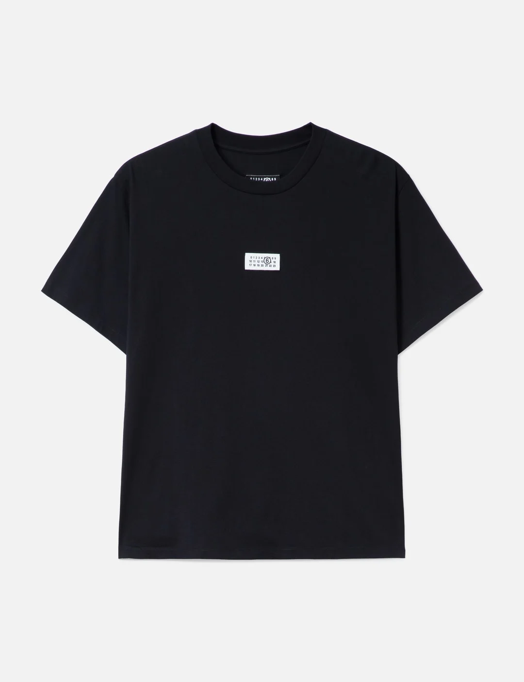 - MM6 Maison Margiela - Numeric Cotton T-shirt - Relaxed fit - Cotton jersey - Crewneck - Short sleeves - Logo patch at the chest - White stitch line at the back - Made in Italy - Color: Black - Material: 100% Cotton - See more SS T-Shirts, T-Shirts and Clothing - Model wears size M - Model measures: Height 187cm, Chest 35.4”/90cm, Waist 27”/69cm, Hip 36”/91cm - Model wears size S - Model measures: Height 180cm, Chest 28.3’’/72cm, Waist 22’’/56cm, Hip 35’’/89cm - Vendor Code: SH0GC0032M20170900