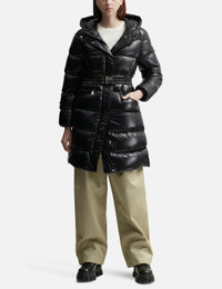 - Moncler - Bellevue Long Down Jacket - Crafted from nylon laque - Nylon laque lining - Longue saison hood lining - Down-filled - Adjustable hood with snap button closure - Zip closure - Zipped pockets - Detachable elastic belt with nylon buckle - Elastic cuffs - Hem with drawstring fastening - Color: Black - Material: 100% Polyamide - See more Puffer Jackets, Jackets and Clothing SIZING - Model wears size 1 - Model measures: Height 177cm, Chest 32"/81cm, Waist 23.5"/59.7cm, Hip 33’’/83.8cm