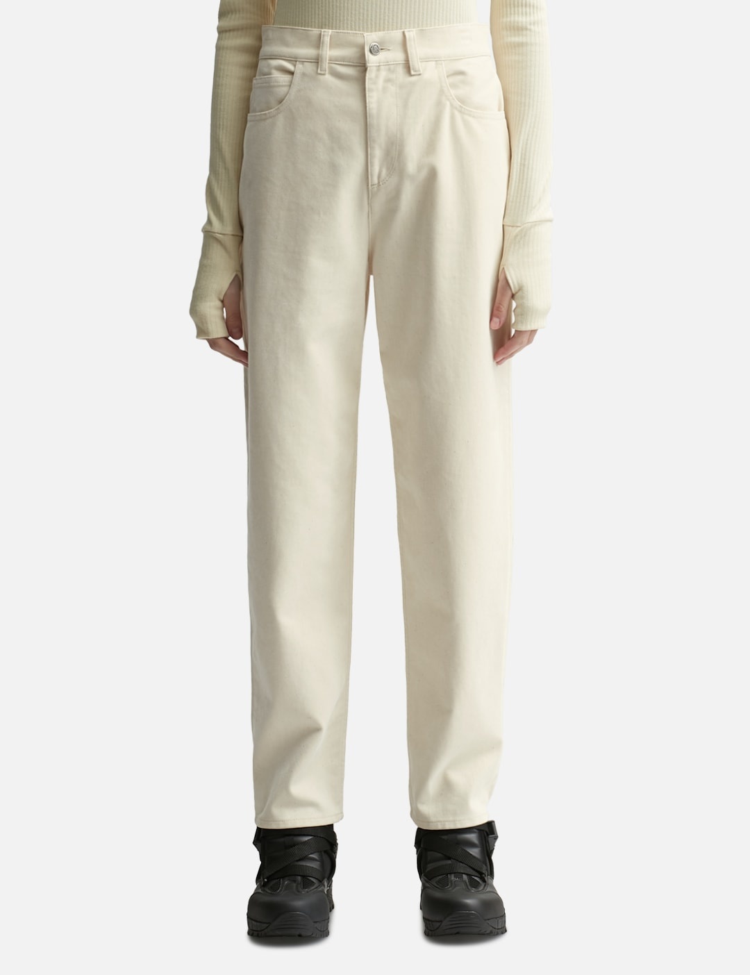 - Moncler - Cropped Jeans - Crafted from denim - Belt loops - Zip and button closure - Slit pockets - Color: White - Material: 100% Cotton - See more Jeans and Clothing SIZING - Model wears size 38 - Model measures: Height 177cm, Chest 32"/81cm, Waist 23.5"/59.7cm, Hip 33’’/83.8cm