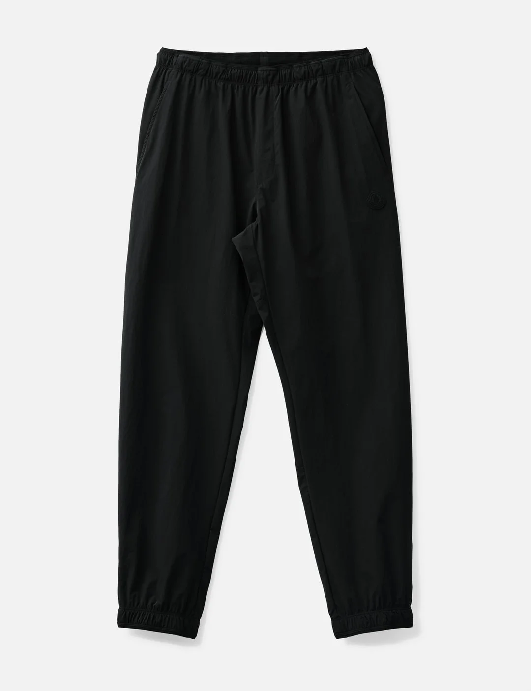 - Moncler - Jogging Trousers - Made of stretch technical nylon - Elastic waistband with drawstring - Side pockets - Zipped back pockets - Adjustable cuffs - Made in Italy - Color: Black - Material: 87% Polyamide, 13% Elastane - See more Pants and Clothing - Model wears size 46 - Model measures: Height 186cm, Chest 34”/86cm, Waist 28”/71cm, Hip 36”/91cm - Vendor Code: K2091 2A00048 - 59818