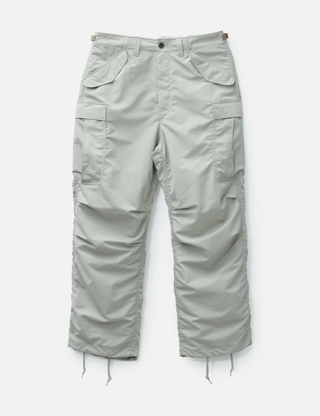 - Nanamica - ALPHADRY Field Cargo Pants - Wide, straight-cut - Made from ALPHADRY® fabric - Moisture-wicking, quick-drying and stretch properties - Front zipper closure - Adjustable waistband with side buckled straps - Gusset in the inseam - Two front flap pockets - Two side cargo pockets with snap buttons - Drawstring hem - Two back snap pockets - Color: Light Khaki - Material: 76% Polyester, 24% Elasterell Polyester - See more Pants and Clothing - Model wears size 32 - Model measures: Height 186cm, Chest 34”/86cm, Waist 28”/71cm, Hip 36”/91cm - Vendor Code: S25FC034E