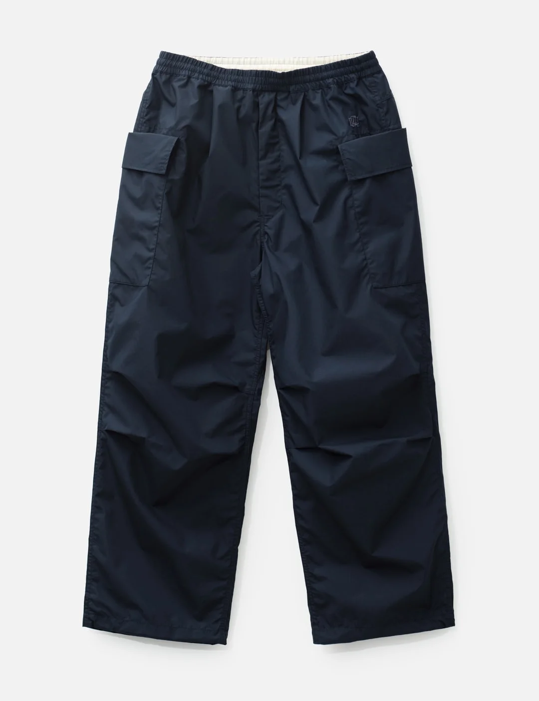 - Nanamica - Cargo Deck Pants - Wide straight cut - Elasticated waistband - Front zip fly - Two side flap pockets with button closure - Two rear slip pockets - Drawcord at hem - Water-repellent - Color: Dark Navy - Material: 65% Polyester, 35% Cotton - See more Pants and Clothing - Model wears size 32 - Model measures: Height 186cm, Chest 34”/86cm, Waist 28”/71cm, Hip 36”/91cm - Vendor Code: S25SC006E
