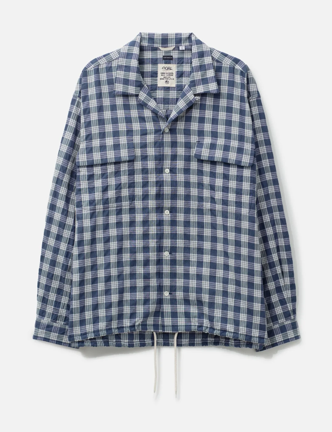 - Nanamica - Palaka Check Shirt - Relaxed, oversized fit - Made from palaka check broadcloth - Natural wrinkling created by differential shrinkage - Open-collar - Buttoned closure - Two front pockets - Adjustable hem with drawcord - Color: Navy - Material: 75% Cotton, 25% Polyester - See more Shirts and Clothing - Model wears size M - Model measures: Height 186cm, Chest 34”/86cm, Waist 28”/71cm, Hip 36”/91cm - Vendor Code: S26SG012E