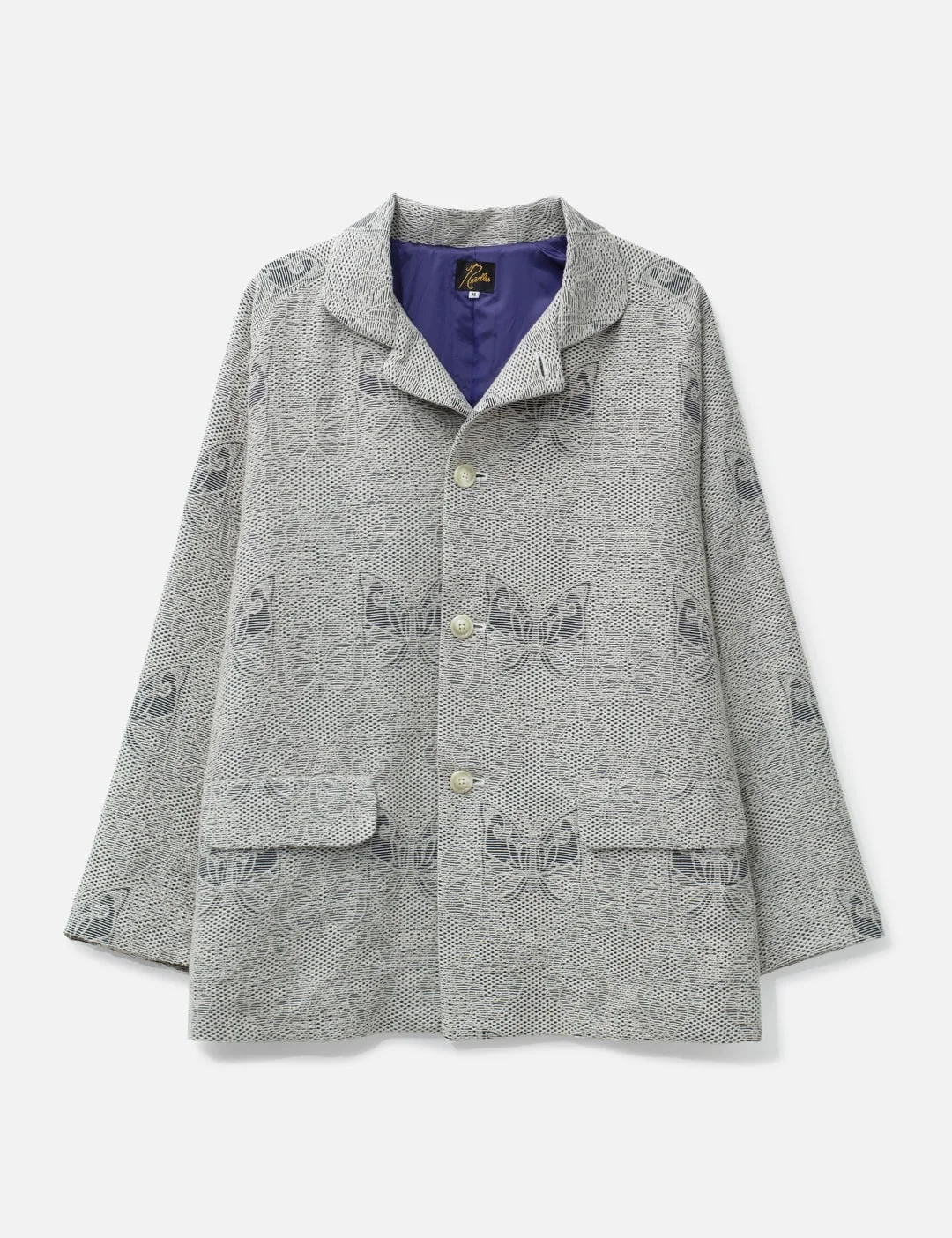 - Needles - Stand Collar Jacket - Acrylic and wool blend exterior - All-over papillon jacquard pattern - Stand collar - Four-button closure - Flap pockets - Made in Japan - Color: Off White - Material: 41% Acrylic, 28% Nylon, 19% Cotton, 12% Wool - See more Jackets and Clothing - Model wears size M - Model measures: Height 186cm, Chest 34”/86cm, Waist 28”/71cm, Hip 36”/91cm - Vendor Code: RW153