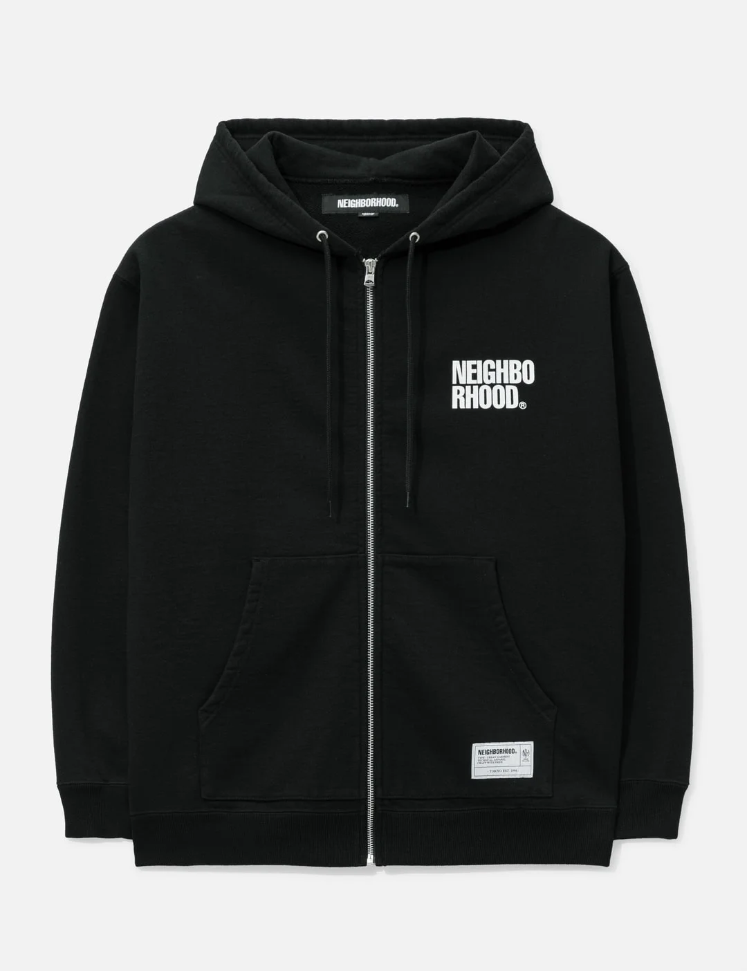 - NEIGHBORHOOD - Classic Sweat Zip Hoodie Long Sleeves - Made of tightly knit fleece-backed fabric - Double-thread loops for durability and softness - Hood with drawcord - Zipper closure - Printed logos on the left chest and back - Two front pockets - Brand tag on pocket and side seam - Made in Japan - Color: Black - Material: 100% Cotton - See more Hoodies and Clothing - Model wears size M - Model measures: Height 186cm, Chest 34”/86cm, Waist 28”/71cm, Hip 36”/91cm - Vendor Code: 252UWNH-CSM03