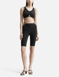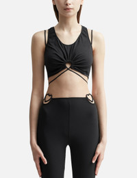 - Nensi Dojaka - Cut-out Tank Top - Stretch-fit - Round neckline - Ruched detailing to the front with key hole cut-out design - Waist-cinching strap accent - Decorative strap accent to the front and rear - Cropped - Color: Black - Material: 100% Cotton - See more Tops and Clothing SIZING - Model wears size S - Model measures: Height 176cm, Chest 32”/81cm, Waist 23”/59cm, Hip 35”/90cm