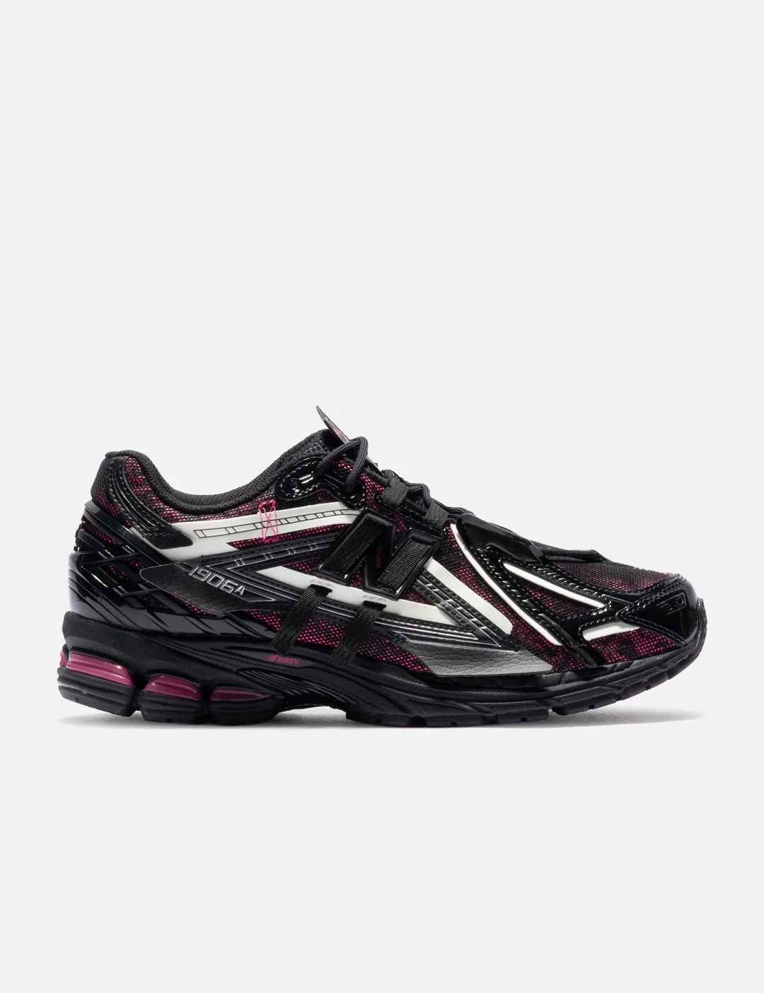 - New Balance - 1906A - Open-holed mesh and synthetic overlays - Lace-up closure - TPU heel cage - Stability web technology - ACTEVA LITE midsole cushioning - N-ergy rubber outsole - Color: Black/ Dragon Berry/ White - Material: Synthetic, Rubber - See more Sneakers and Shoes - Vendor Code: U1906AD
