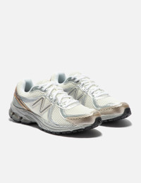 - New Balance - 860v2 - Mesh and synthetic upper - Lace-up closure - Reflective details - N-ergy outsole for superior shock absorption - Color: Sea Salt/Gold Metallic/Harbor Gray - Material: Mesh, Synthetic, Rubber - See more Sneakers and Shoes