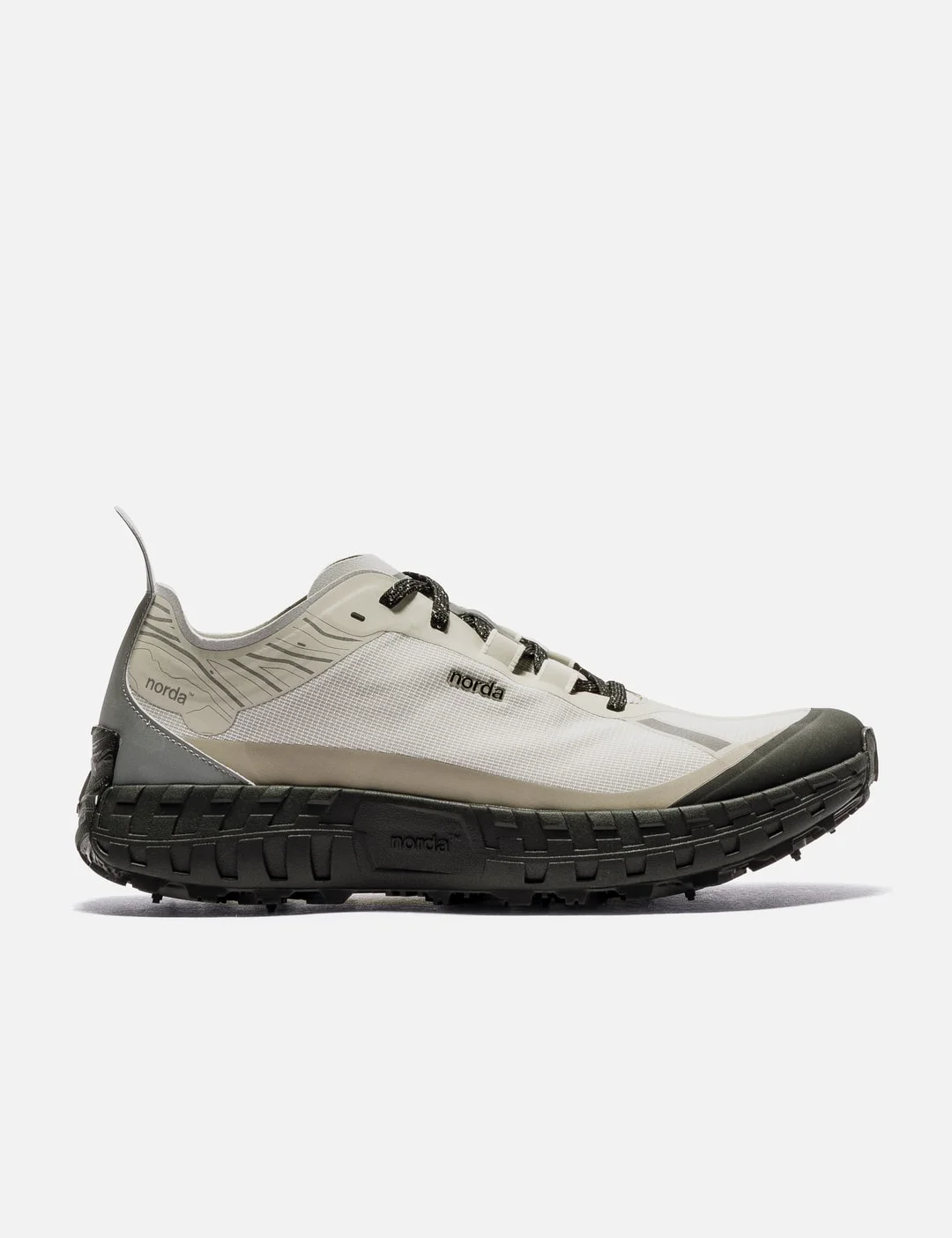 - norda - norda 001A - Seamless bio-based Dyneema® upper - Lace-up closure - Lace with diamond pattern with bio-based Dyneema® and recycled polyester - Hi-Vis reflective details - Norda™ Lock System - Custom-designed eTPU insole - Proprietary norda™ x Arnitel® TPEE blend - Norda™ x Vibram® exclusive design sole with Litebase® and Megagrip® - 5mm lugs - Color: Cinder - Material: Dyneema®, Recycled polyester, eTPU, TPEE, Rubber - See more Sneakers and Shoes - Vendor Code: 001 - M - Cinder