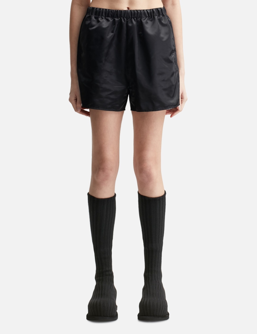 - Nothing Written - Nylon Short Pants - Glossy nylon fabric - Elasticated waistband with hidden drawcord - Two side pockets - Color: Black - Material: 100% Nylon - See more Shorts and Clothing SIZING - Model wears size S - Model measures: Height 175cm, Chest 32’/81cm, Waist 24.5’’/61.2cm, Hip 35’’/88.9cm
