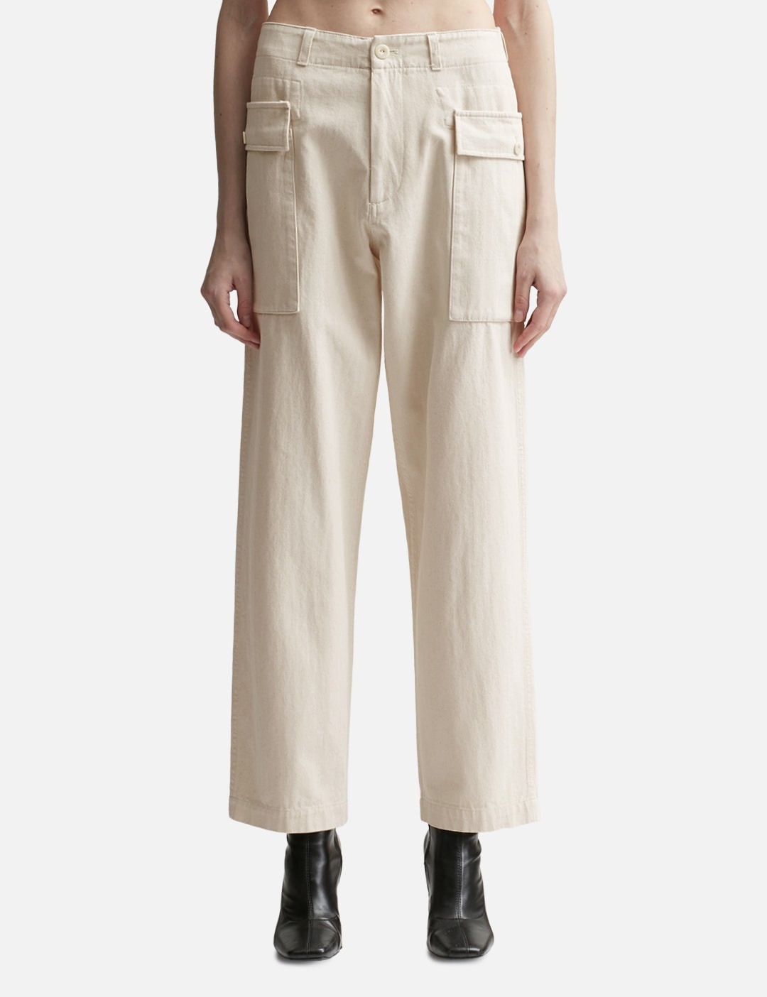 - Nothing Written - Washed Cargo Pants - Loose fit - Waistband with belt loop - Cargo patch pockets on front - Flap pocket at rear - Nut-like buttons - Straight cuffs - Color: Cream - Material: 100% Cotton - See more Pants and Clothing SIZING - Model wears size S - Model measures: Height 177cm, Chest 32”/81cm, Waist 23.5”/59.7cm, Hip 33’’/83.8cm