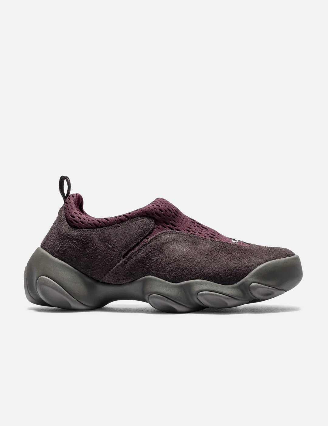 - Oakley Factory Team - Oakley Factory Team Suede Flesh - Slip-on - Sock-like design - Java Suede leather mixed Aeroprene upper with mesh material - Caviar heel collar - Pull tab on heel - OrthoLite insole - Chunky, undulating 3-point fit outsole - Color: Ganache/Burgundy - Material: Leather, Polyester - See more Sneakers and Shoes - Vendor Code: BDP25S00004456BR15