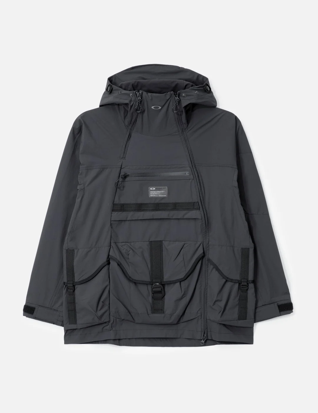 - Oakley - Fgl Stroke Anorak 5.7 - Made of woven nylon fabric - Water-repellent - High collar hood with hidden gusset and snap button details - Dual front zips: one at the collar, one full-length - Multi-pocket design - Woven FGL logo patch on the front - Adjustable cuffs with Velcro straps - Color: Phantom - Material: 100% Polyester - See more Jackets and Clothing - Model wears size M - Model measures: Height 186cm, Chest 34”/86cm, Waist 28”/71cm, Hip 36”/91cm - Vendor Code: FOA408118