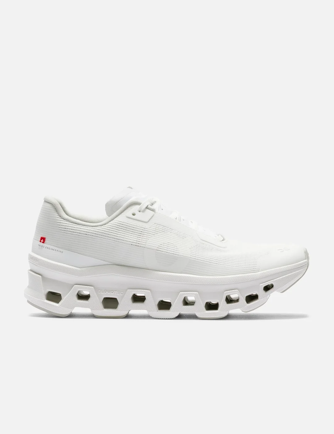 - On - Cloudmonster Void - Breathable mesh upper - Faux suede accents - Lace-up closure - TPU eyelet - Perforated microfiber tongue - Padded collar - Helion™ superfoam and CloudTec® cushioning - Speedboard® - Rubber outsole - Color: White/ White - Material: Recycled polyester, TPU, Rubber - See more Sneakers and Shoes - Vendor Code: 3WG10811200