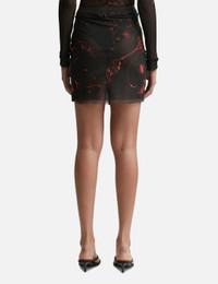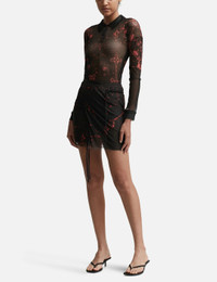 - Ottolinger - Mesh Wrap Mini Skirt - Mini silhouette - Elasticated waist - Branding on waistband - Graphic print throughout - Tie details at the right side - Semi-sheer - Layered design - With belt loop - Color: Skribbl Red - Material: 90% Recycled Polyester, 10% Spandex - See more Skirts and Clothing SIZING - Model wears size XS - Model measures: Height 177cm, Chest 29”/74cm, Waist 23.6”/60cm,Hip 34.6’’/88cm