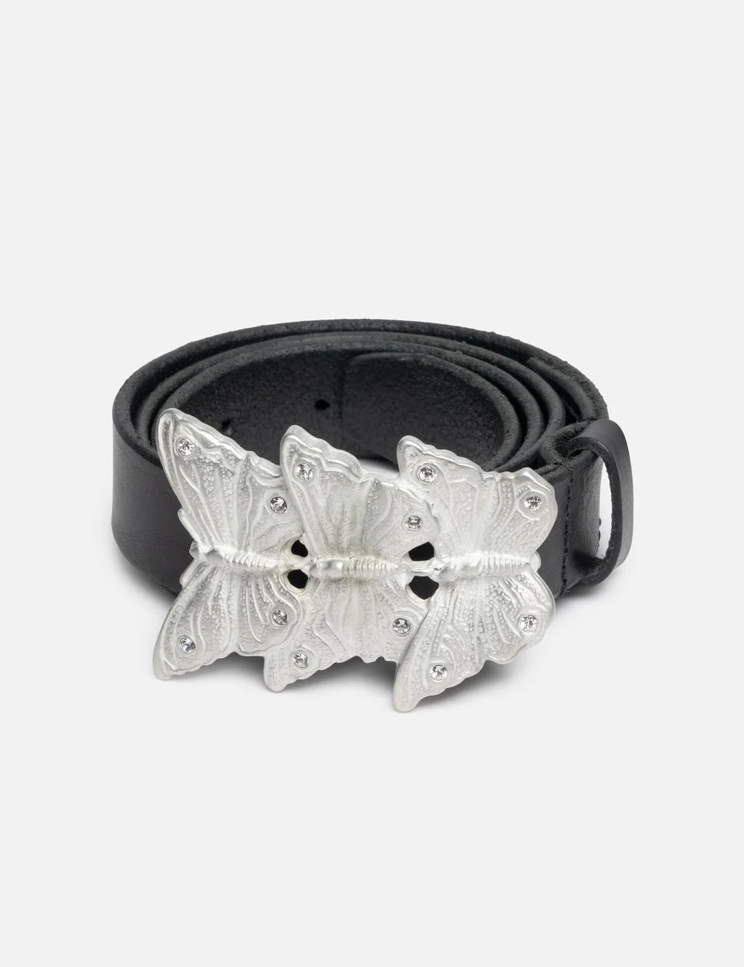 - Our Legacy - Butterfly Belt - Made of Portuguese leather - Silver-tone metal butterfly buckle - Single leather keeper - 3cm wide - Comes with a dust bag - Color: Oily Black Leather - Material: Leather - See more Belts and Accessories - CM 70 - Width: 3cm - Max. Length: 85cm - Belt Buckle Length: 8.5cm - Belt Buckle Width: 6cm - CM 80 - Width: 3cm - Max. Length: 95cm - Belt Buckle Length: 8.5cm - Belt Buckle Width: 6cm - CM 90 - Width: 3cm - Max. Length: 105.5cm - Belt Buckle Length: 8.5cm - Belt Buckle Width: 6cm - Vendor Code: A4258BO