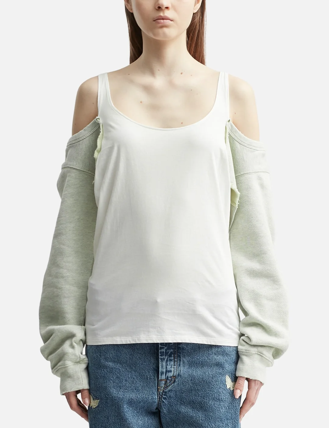 - Our Legacy - Cardigan Tank - Portuguese cotton jersey fabric - Distressed details - Fleece jersey cardigan overlay - Strap shoulder tank underlay - Color: Yellow Tint Melange Fleece - Material: 100% Cotton - See more Tops and Clothing - Model wears size 34 - Model measures: Height 178cm, Chest 30’’/76.2cm, Waist 23”’/58.4cm, Hip 34.5’’/87.6cm - Vendor Code: W2256CY