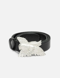 - Our Legacy - Dove Belt - Made of Italian bull leather - Vegetable-tanned full grain - Anchor dove buckle - Single keeper - 30mm wide - Comes with a dust bag - Color: Oily Black Leather - Material: Leather - See more Belts and Accessories - CM 80 - Width: 3cm - Max. Length: 96.5cm - Belt Buckle Length: 8cm - Belt Buckle Width: 5.7cm - CM 90 - Width: 3cm - Max. Length: 106cm - Belt Buckle Length: 8cm - Belt Buckle Width: 5.7cm - CM 100 - Width: 3cm - Max. Length: 116.5cm - Belt Buckle Length: 8cm - Belt Buckle Width: 5.7cm - Vendor Code: A2268DO