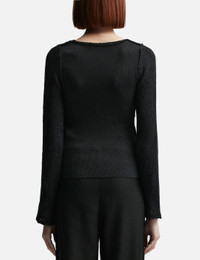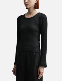 - Our Legacy - Inverse Roundneck - Slim fit - Partially made with recycled polyamide - Rib knit construction - Contrast knitted collar & sleeves - Ribbed cuffs - Color: Black Alluring Tech - Material: 70% Recycled Polyamide, 30% Polyamide - See more Tops and Clothing SIZING - Model wears size 34 - Model measures: Height 177cm, Chest 32"/81cm, Waist 23.5"/59.7cm, Hip 33’’/83.8cm