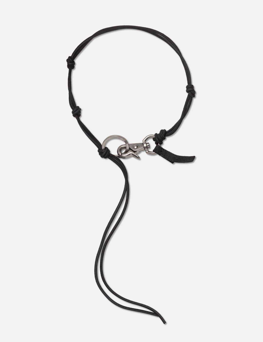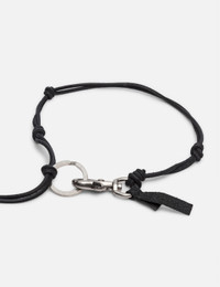 - Our Legacy - Ladon - Hand-stitched leather tab - Key chain - Knotted leather cord - Japanese metal hardware - W-ring with engraved OUR LEGACY logo - Made in Portugal - Color: Black Leather - Material: Leather, Metal - See more Jewelry and Accessories SIZING Approximate measurement: - Max. Length: 67cm