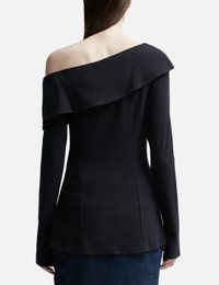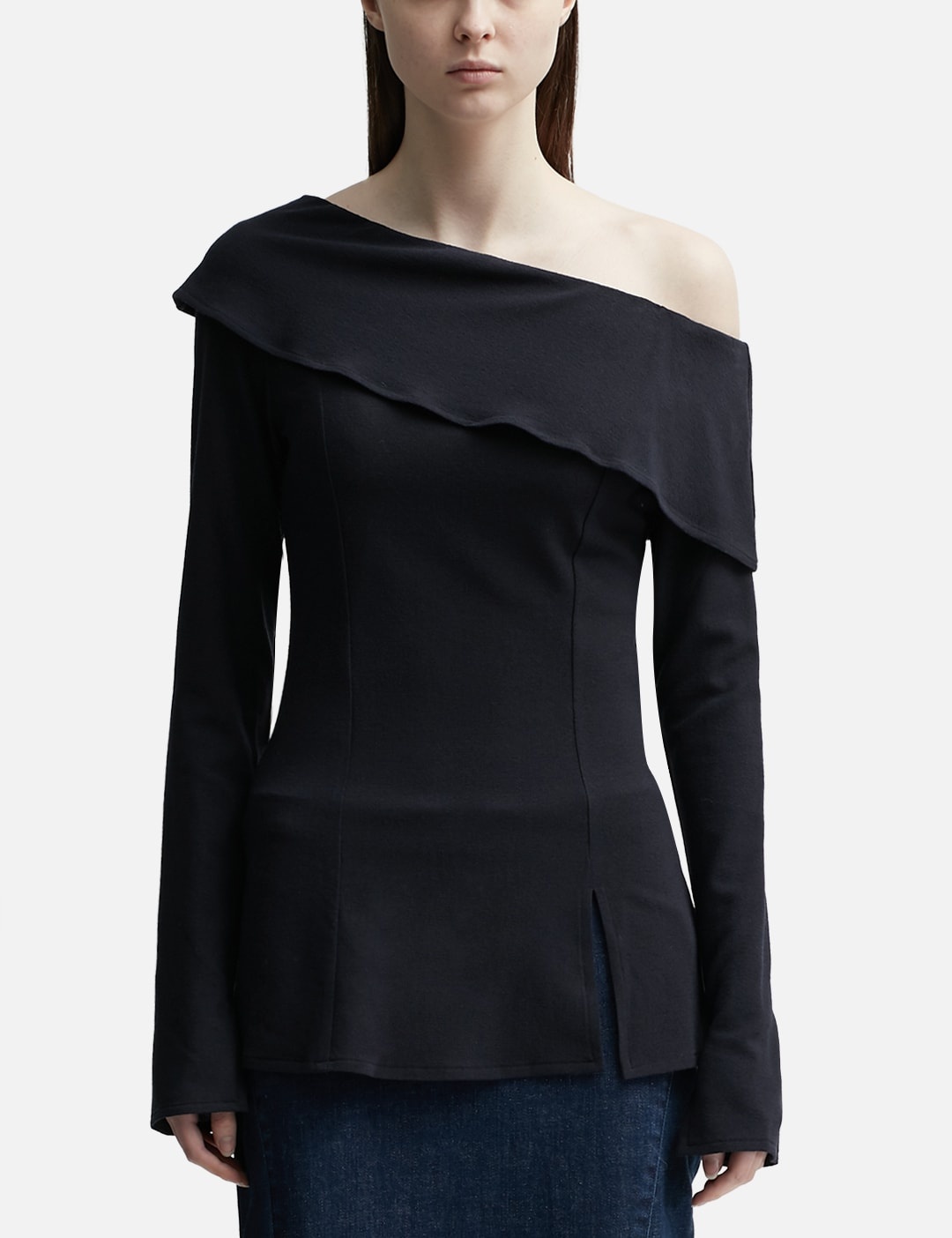 - Paloma Wool - Melissa - Asymmetric top - Lng sleeve - Straight neckline - Exposed shoulders - Color: Dark Navy - Material: 6% wool, 9% polyamide, 5% elastane - See more Tops and Clothing SIZING - Model wears size s - Model measures: Height 175cm, Chest 31"/79cm, Waist 24"/62cm, Hip 35’’/89cm