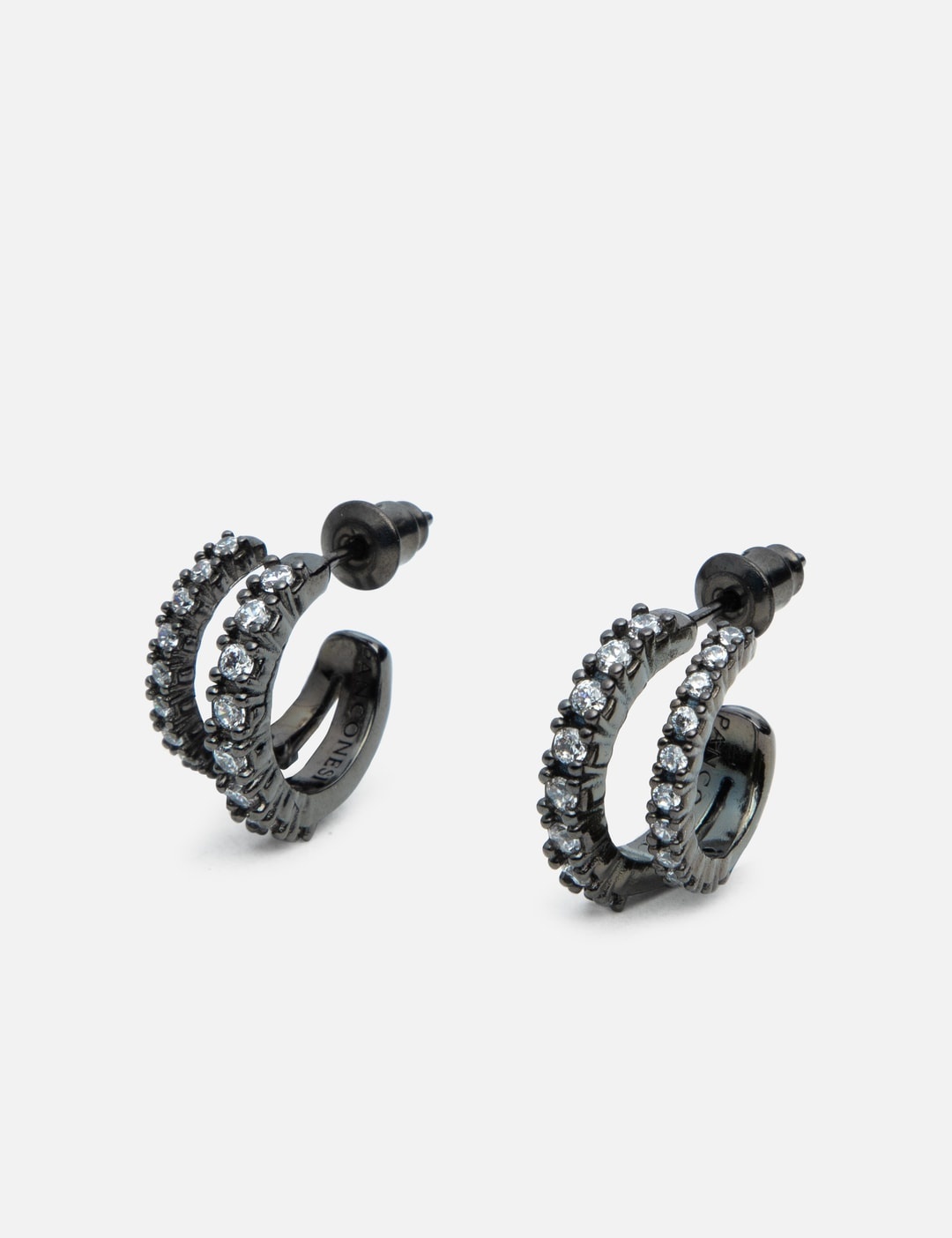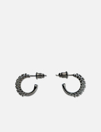 - Panconesi - Crystal Stellar Hoops - Rhodium-plated brass - Zircons embellishment - Stud closure - Made in Italy - Color: Gunmetal - Country Of Origin: IT - Material: Rhodium Plated Brass, Zircons - See more Earrings, Jewelry and Accessories SIZING Approximate dimensions: - 1.5 x 1.5cm