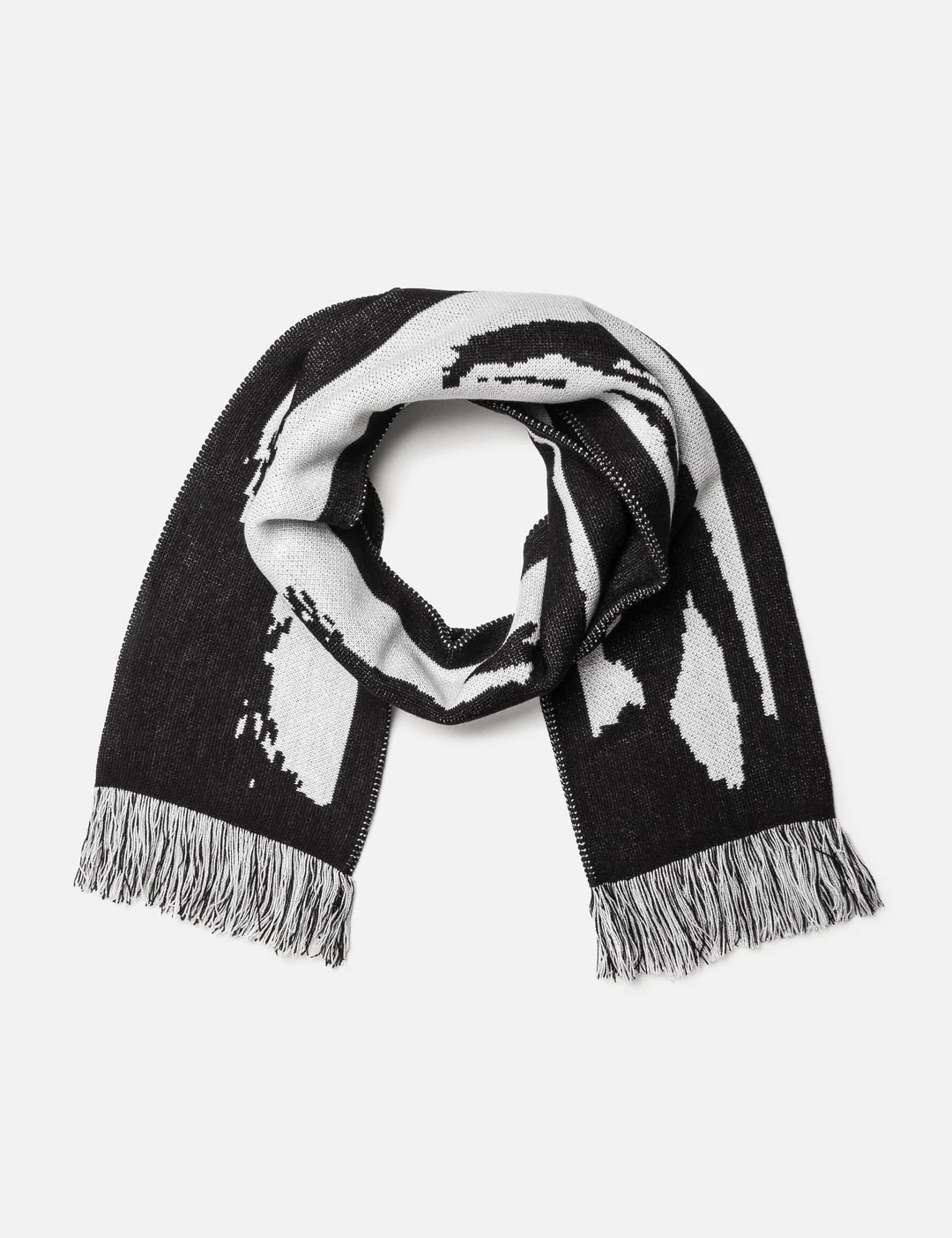 - Perks and Mini - Team Sandbar Scarf - Unisex - Rectangular shape - Double-layer knitted scarf - 'P.A.M. Script logo' knitted on front - 'P.A.M. Maiden eyes' stretched on back - Fringed edges - Color: Black/White - Material: 100% Acrylic - See more Scarves and Accessories - 19cm x 150cm - Vendor Code: 10308/B