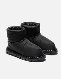 - Prada - Nylon Boots - Water-repellent nylon outer - Ankle length - Padded - Slip-on design - Curved toe - Tonal triangle on collar - Lightweight rubber outsole - Color: Black - Material: Polyamide, Rubber - See more Boots and Shoes