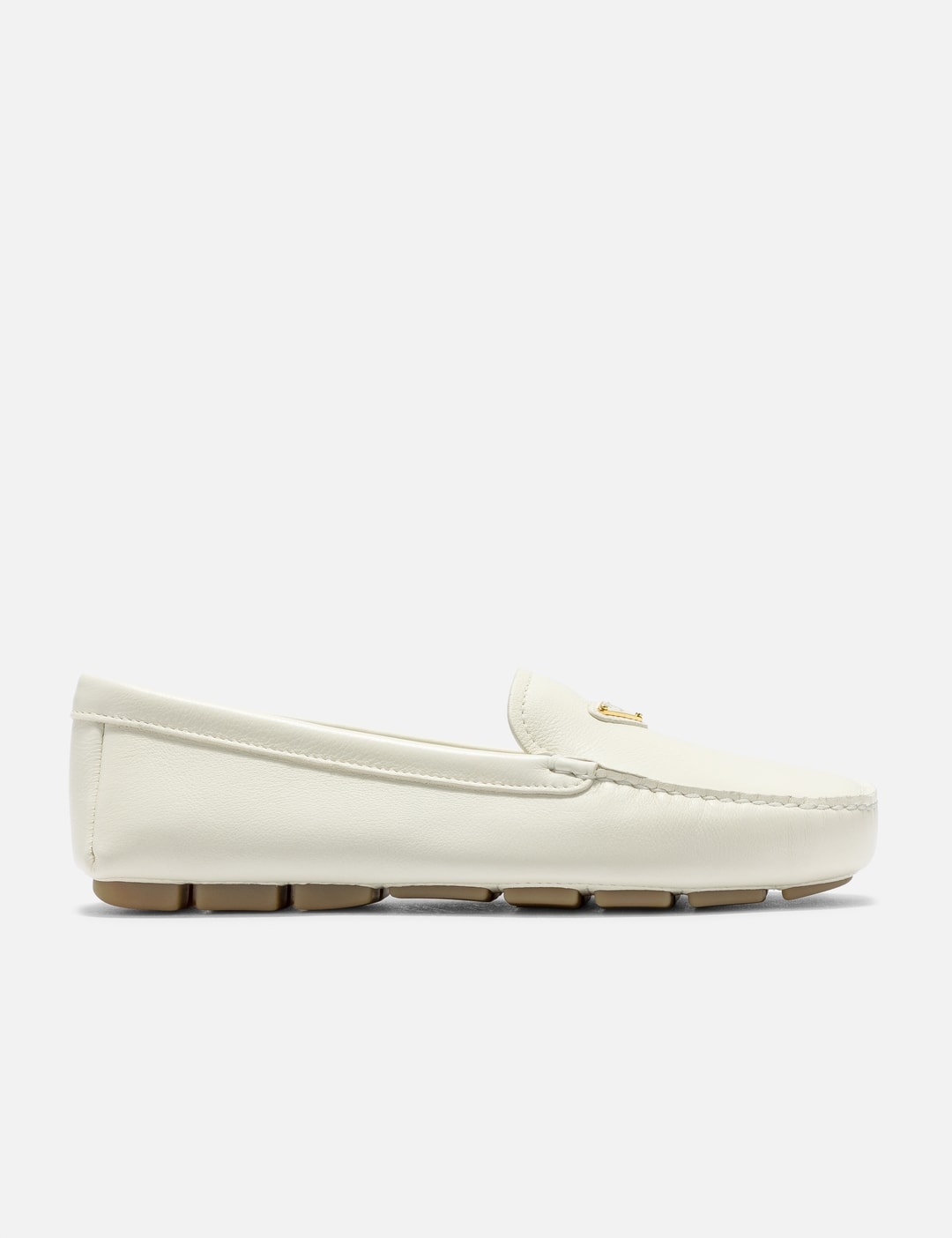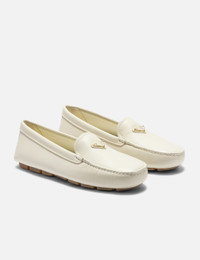 - Prada - Suede driving loafers - Apron with pinched stitch seam - Enameled metal triangle logo - Lightweight, flexible rubber sole - Leather lining - Removable leather-covered insole - Color: Avorio - Material: Leather - See more Casual Shoes and Shoes