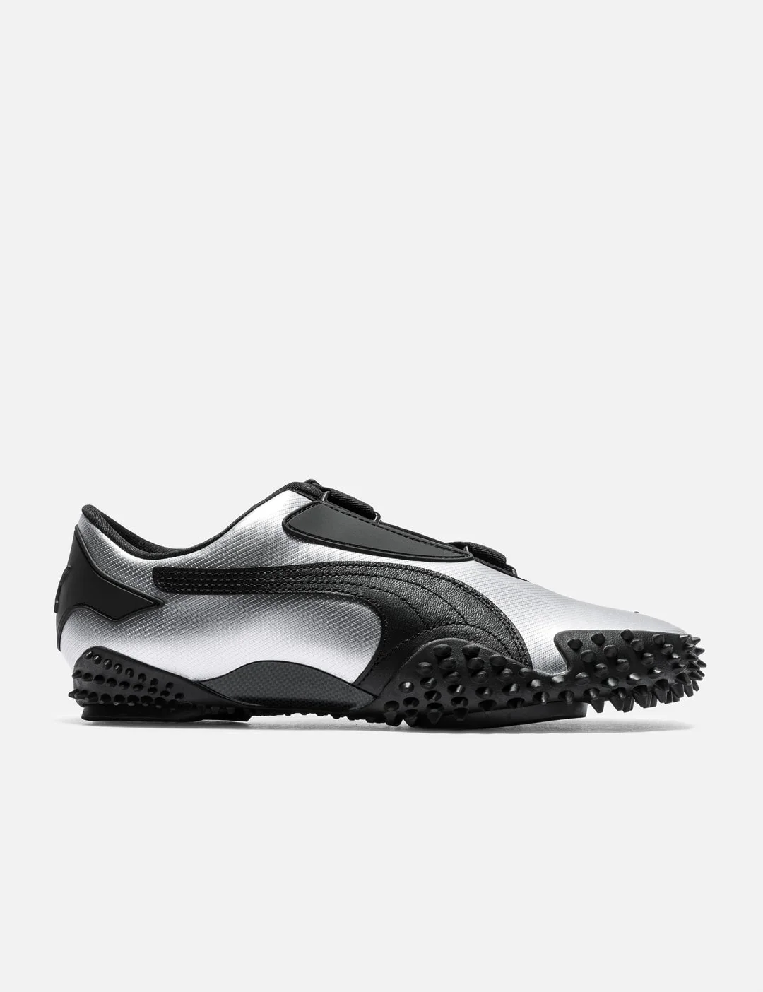 - Puma - Mostro Metal - Regular fit - Leather and synthetic upper - Round toe - Elasticated hook-and-loop closure - Logo patch on tongue - PUMA Formstrip on the side - Embossed PUMA cat logo at heel tab - OrthoLite® sockliner - Rubber midsole - TPU and rubber outsole with spike details - Color: PUMA Silver / PUMA Black - Material: Leather, Synthetic, Textile, Rubber - See more Sneakers and Shoes - Vendor Code: 40318801