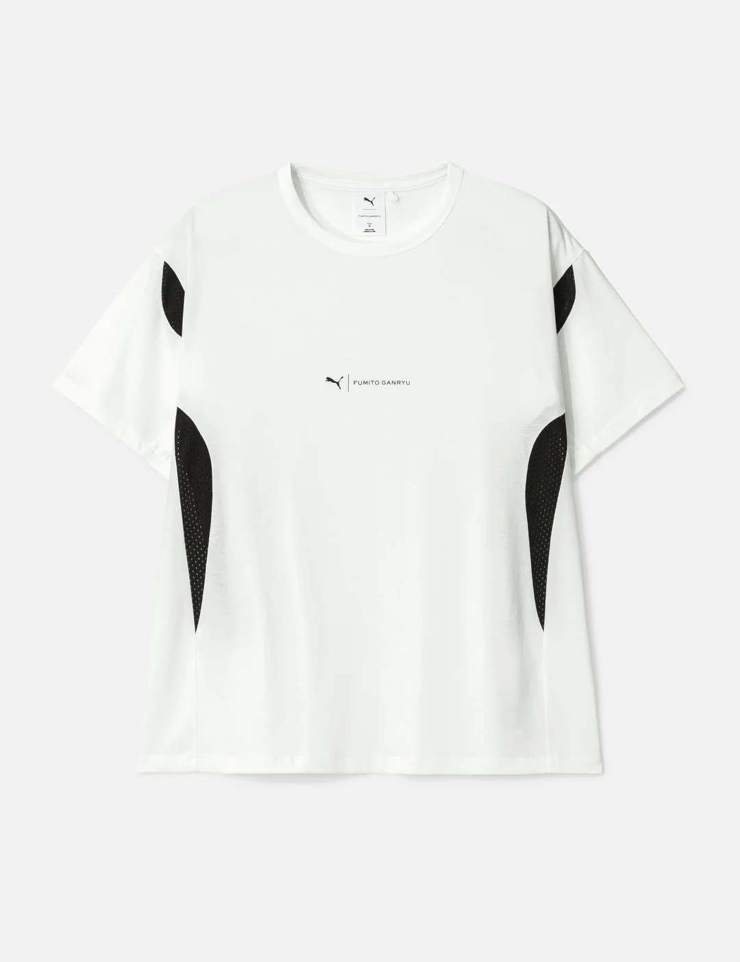 - Puma - PUMA x Fumito Ganryu Short Sleeve T-Shirt - PUMA x Fumito Ganryu collaboration - Soft cotton exterior - Oversized A-line silhouette - Ribbed crewneck - Short sleeves - Mesh panels on sides and armholes - Co-branded logo printed on front - Color: PUMA White - Material: 100% Cotton - See more SS T-Shirts, T-Shirts and Clothing - Model wears size M - Model measures: Height 186cm, Chest 34”/86cm, Waist 28”/71cm, Hip 36”/91cm - Model wears size XS - Model measures: Height 168cm, Chest 30’’/77cm, Waist 23’’/59cm, Hip 34’’/87.5cm - Vendor Code: 63430902