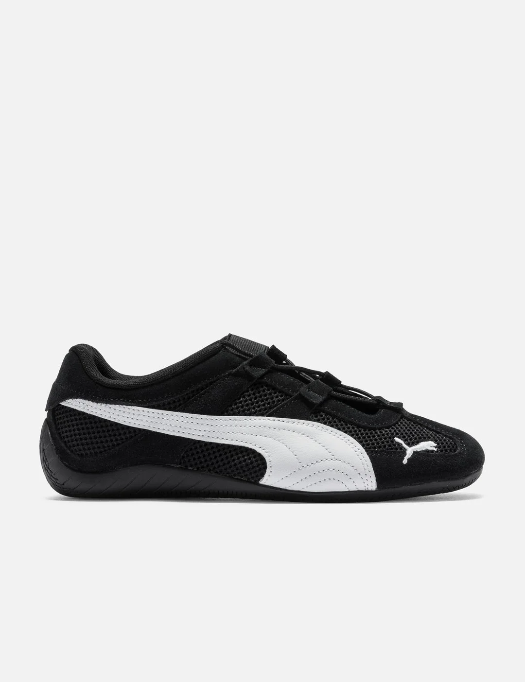 - Puma - Speedcat Go - Regular width - Suede and mesh upper - Drawcord lace closure with elastic band - OrthoLite insole - Rubber outsole - PUMA branding details - Color: Puma Black/ Puma White - Material: Suede, Synthetic, Rubber - See more Sneakers and Shoes - Vendor Code: 40358901