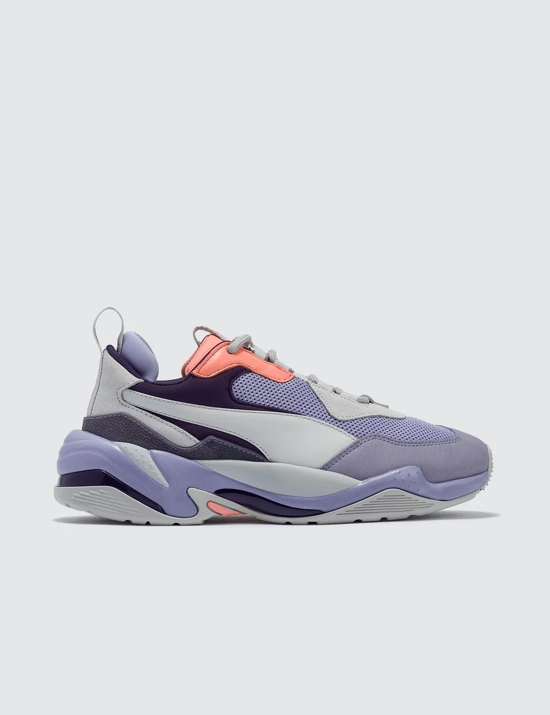 - Puma - Puma - Thunder Fashion 1 - Low top sneakers - Lace-up design - Leather and mesh upper - Pull tab at tongue and heel for easy on and off - Color-blocked panelings - Chunky rubber sole - Color: Sweet Lavender-bright Peach - See more Sneakers and Shoes