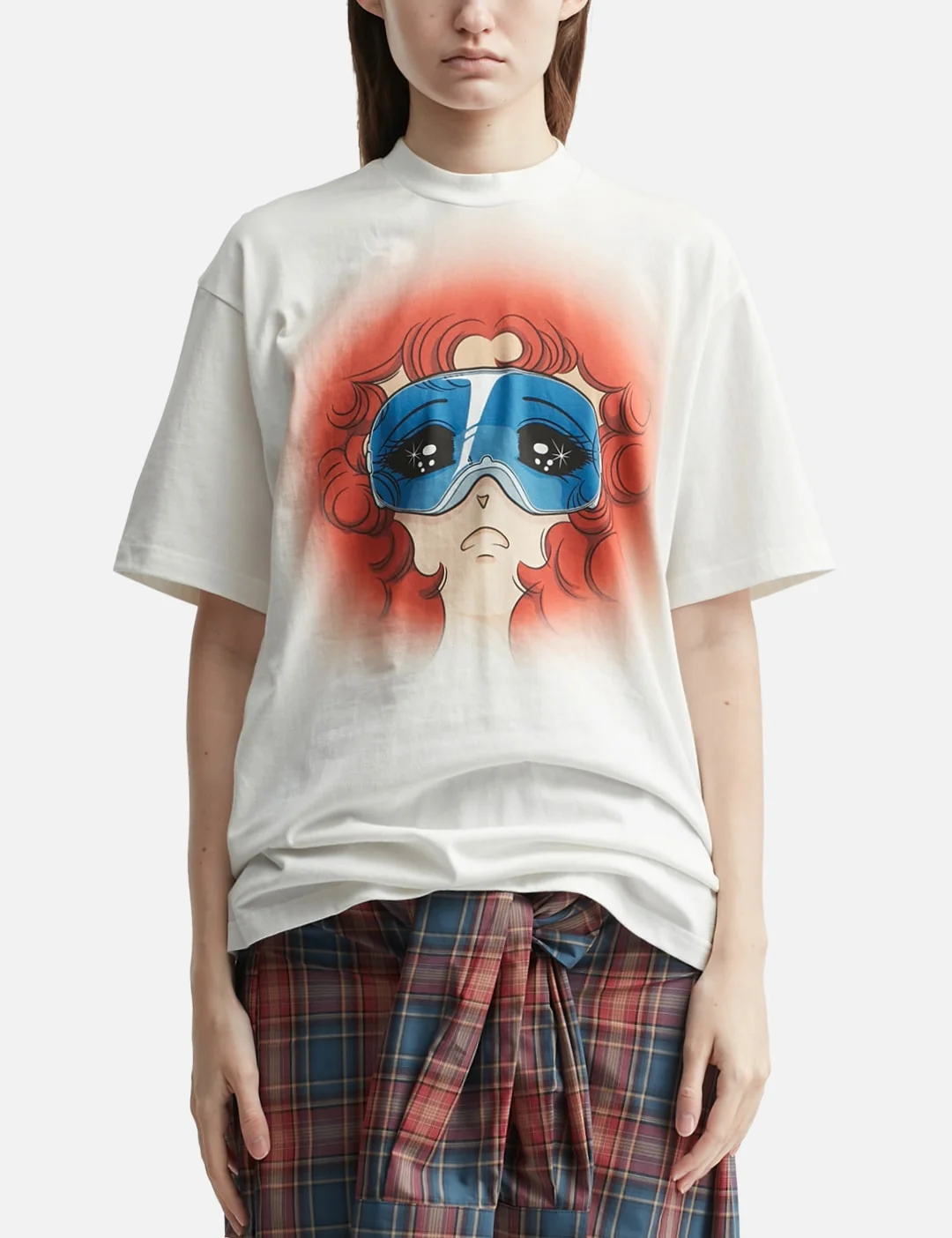 - pushBUTTON - Goggles Girl T-shirt - Rounded collar - Short sleeve - Goggles Girl graphic print on front - Color: White - Material: 100% Cotton - See more T-Shirts and Clothing - Vendor Code: PB2610605W