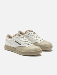 - Reebok - Club C Panelled Sneakers - Leather upper with textile panels - Lace-up closure - Perforated toe - Logo in raised texture on lateral side - Branded and padded tongue and heel patch - Soft fabric lining - Rubber outsole - Color: Beige/Pale Blue - Material: Leather, Textile, Rubber - See more Sneakers and Shoes