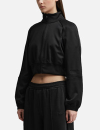- Reebok - Cropped Track Jacket - Zip closure - Raglan sleeves - Cropped above the waist - High neck - Elasticated cuffs - Tonal logo embriodery at rear and on sleeve - Ribbed hem - Color: Black - Material: 55% Polyester, 45% Cotton - See more Jackets and Clothing SIZING - Model wears size S - Model measures: Height 179cm, Chest 33”/83cm, Waist 24.8”/63cm,Hip 35’’/89cm