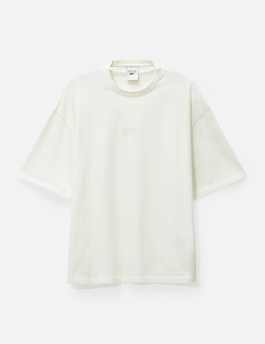 - Reebok - Reebok x Botter Trompe L’oeil T-shirt - Reebok x Botter collaboration - Oversized fit - Short sleeve - Ribbed crewneck - Cotton jersey - Trompe-l'œil logo at front - Made in Portugal - Color: Off White - Material: 100% Cotton - See more SS T-Shirts, T-Shirts and Clothing SIZING Men - Model wears size L - Model measures: Height 187cm, Chest 36”/91cm, Waist 28”/72cm, Hip 36”/91cm - Model wears size XS - Model measures: Height 178cm, Chest 33”/84cm, Waist 24’’/61cm, Hip 36’’/91cm