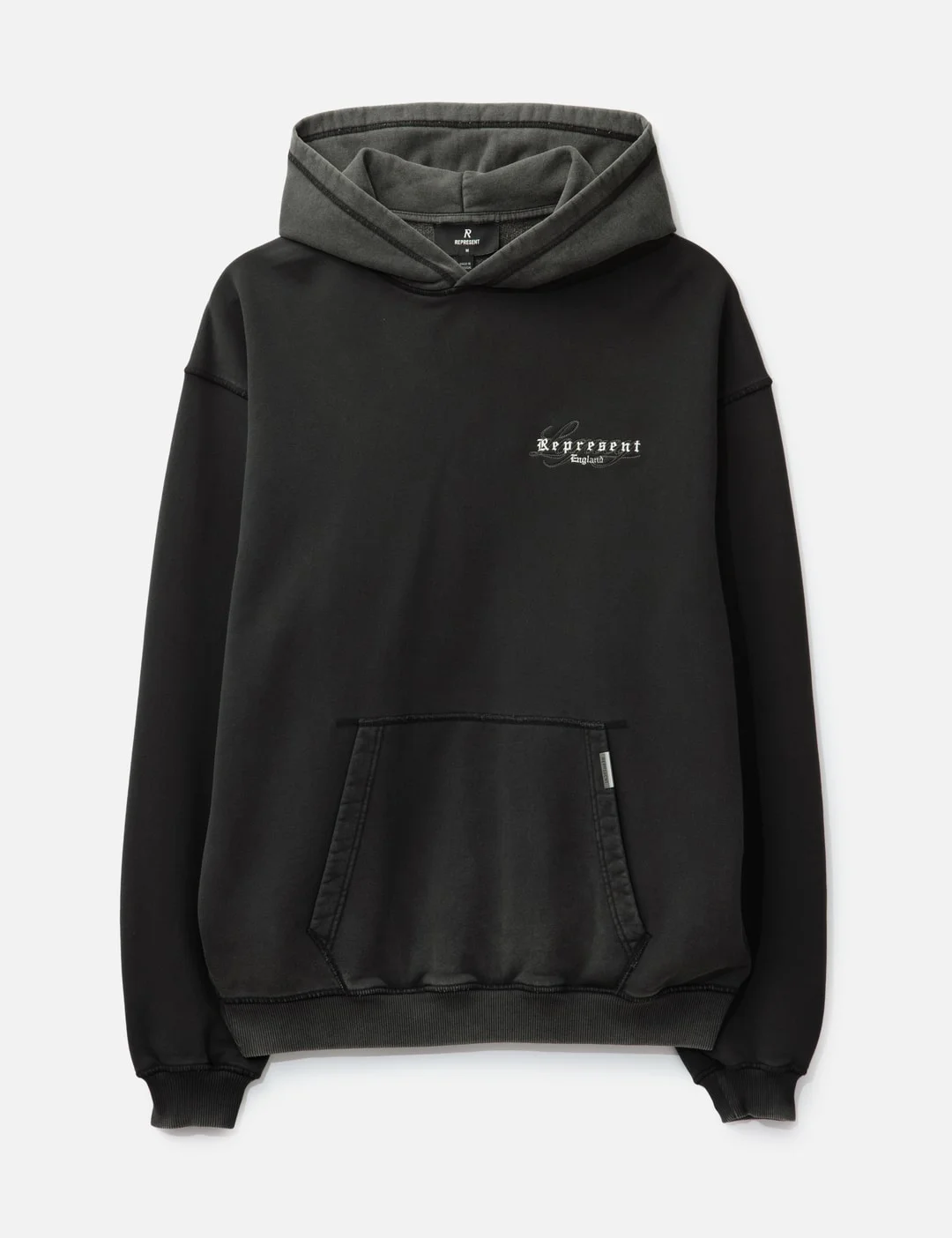 - Represent - Represent Legacy Overprint Hoodie - Made of 480gsm heavyweight jersey cotton - Fade out washed - Loopback Jersey - Oversized fit - Represent England embroideries on chest and back - Metal bar logo on the pocket - Ribbed hems and cuffs - Color: Vintage Black - Material: 100% Cotton - See more Hoodies and Clothing - Model wears size M - Model measures: Height 186cm, Chest 34”/86cm, Waist 28”/71cm, Hip 36”/91cm - Vendor Code: MLM100374