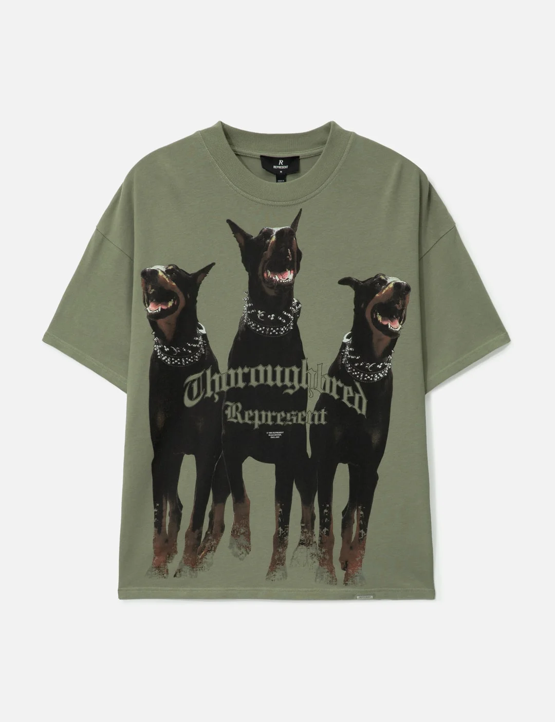 - Represent - Thoroughbred T-shirt - Made of 220 gsm mediumweight cotton - Oversized fit - Ribbed crewneck - Short sleeves - Thoroughbred graphic on front - Represent metal bar logo - Color: Khaki - Material: 100% Cotton - See more SS T-Shirts, T-Shirts and Clothing - Model wears size M - Model measures: Height 186cm, Chest 34”/86cm, Waist 28”/71cm, Hip 36”/91cm - Vendor Code: MLM41135