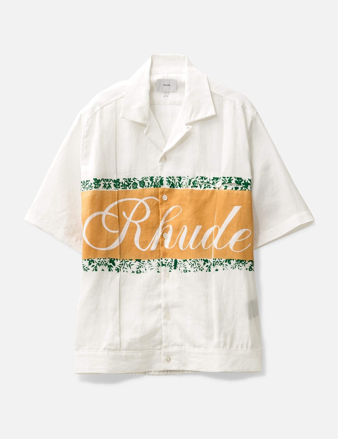 - Rhude - Linen Cuban Shirt - Short sleeves - Buttoned chest pocket - RHUDE designs on front - Flat hem with elastic on back - Color: Ivory - Material: 100% Linen - See more Shirts and Clothing SIZING - Model wears size M - Model measures: Height 186cm, Chest 35”/89cm, Waist 30.5”/78cm, Hip 35.5”/91cm
