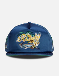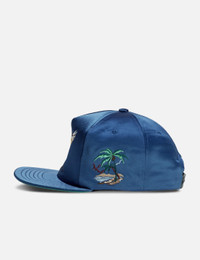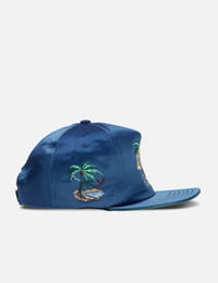 - Rhude - Palm eagles souvenier hat - Quilted heavyweight vintage trucker cap - 5-panel - fully embroidered on the front and palms on the side - Adjustable strap at the back - Green under brim - Color: Navy - Material: 100% Polyester - See more Caps, Hats and Accessories SIZING Approximate dimensions: - Brim Width: 6.5cm - Crown Height: 12cm - Circumference: 60cm