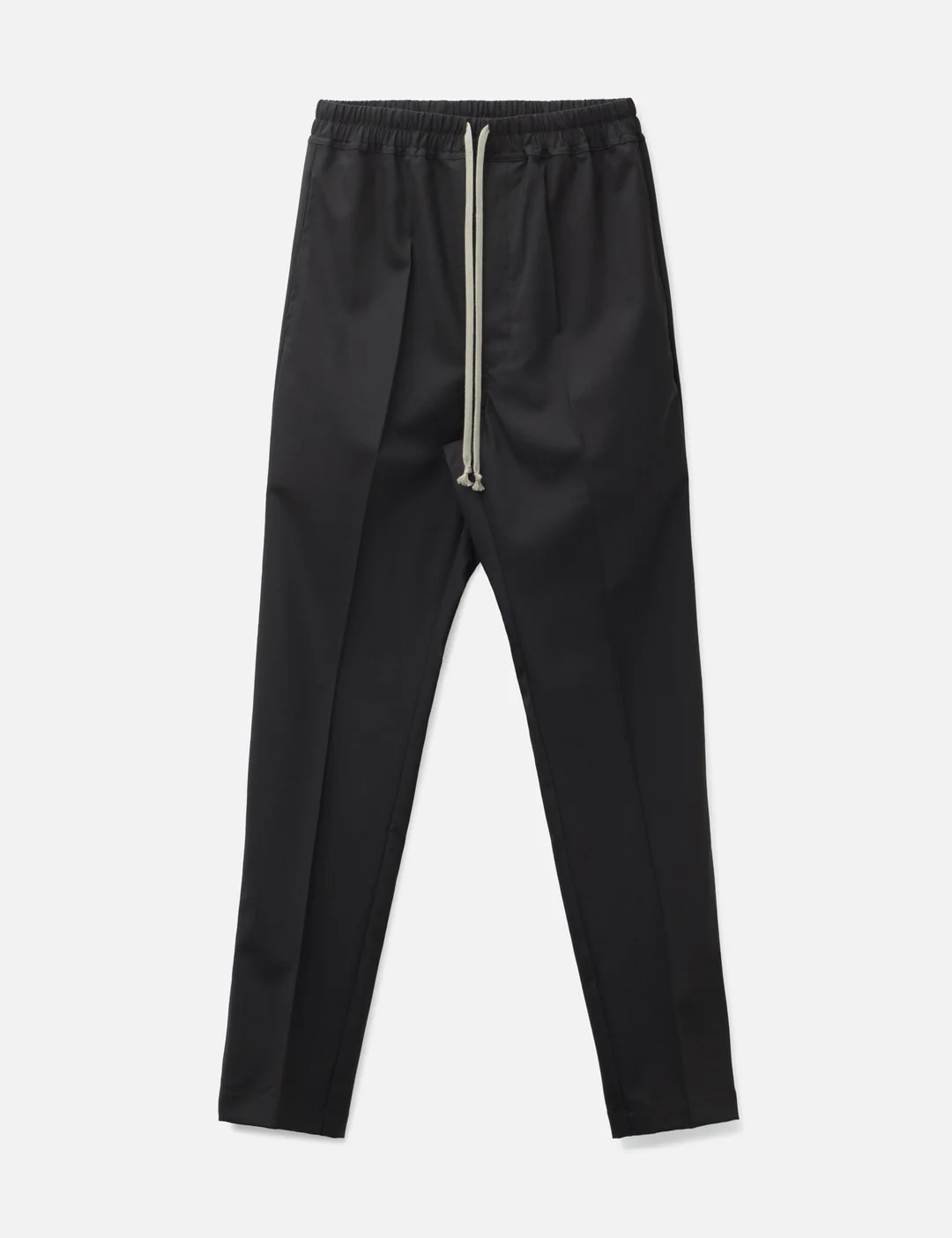 - Rick Owens - Drawstring Slim Long In Paper Wool - Made of lightweight and semi transparent wool gauze - Slim fit - Elasticized waistband with drawstring - Concealed fly - Creases in the front and back leg - Two side front pockets - Two buttoned back pockets with topstitching - Color: 09 Black - Material: 100% New Wool - See more Pants and Clothing - Model wears size 46 - Model measures: Height 186cm, Chest 34”/86cm, Waist 28”/71cm, Hip 36”/91cm - Vendor Code: RU01F2390-ZL