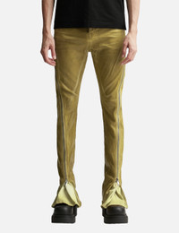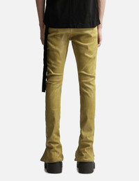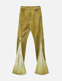 - Rick Owens Drkshdw - Bolan Banana In Ochre Foil Stretch Denim - High waisted - Slim fit - 5 pockets jean with a floor-length boot cut - Waistband with belt loops - Zip closure with concealed button fly - Long Zipper Running From Centre Butt, curving around the hip to the hem - Color: Ochre - Material: 85% Cotton, 10% Polyester, 5% Elastane - See more Pants and Clothing SIZING - Model wears size 30 - Model measures: Height 190cm, Chest 36"/94cm, Waist 29”/74cm, Hip 37"/94cm