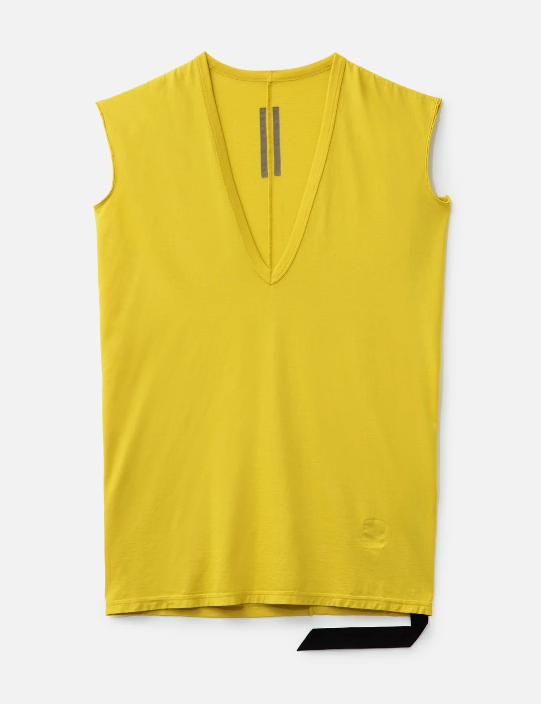 - Rick Owens Drkshdw - Dylan T-shirt - Made of mediumweight classic cotton jersey - Made using GOTS certified organic cotton - Below hip length - Extreme deep V-neck - Wide tank shoulders - Reinforced raw cut armholes - Signature single seam ron centre back - Sleeveless - Made in Italy - Color: Lemon - Material: 100% Cotton - See more Tanks and Clothing - Model wears size M - Model measures: Height 190cm, Chest 32”/84cm, Waist 32”/81cm, Hip 34”/86cm - Vendor Code: DU02E7157-RN