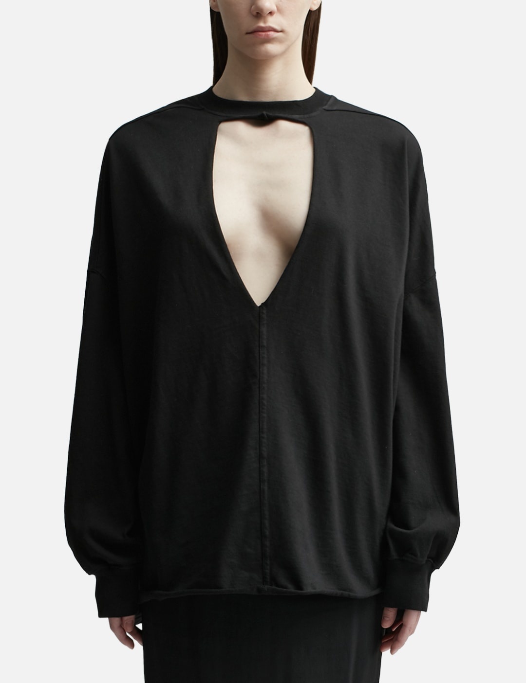 - Rick Owens Drkshdw - Eclipse Top - Oversized fit - Drop shoulder - Ribbed neckline and cuffs - Deep v-cut at front - Raw-cut hem - Color: Black - Material: 100% Cotton - See more Hoodies and Clothing SIZING - Model wears size L - Model measures: Height 177cm, Chest 34”/86.36cm, Waist 24’’/60.96cm, Hip35’’/88.9cm