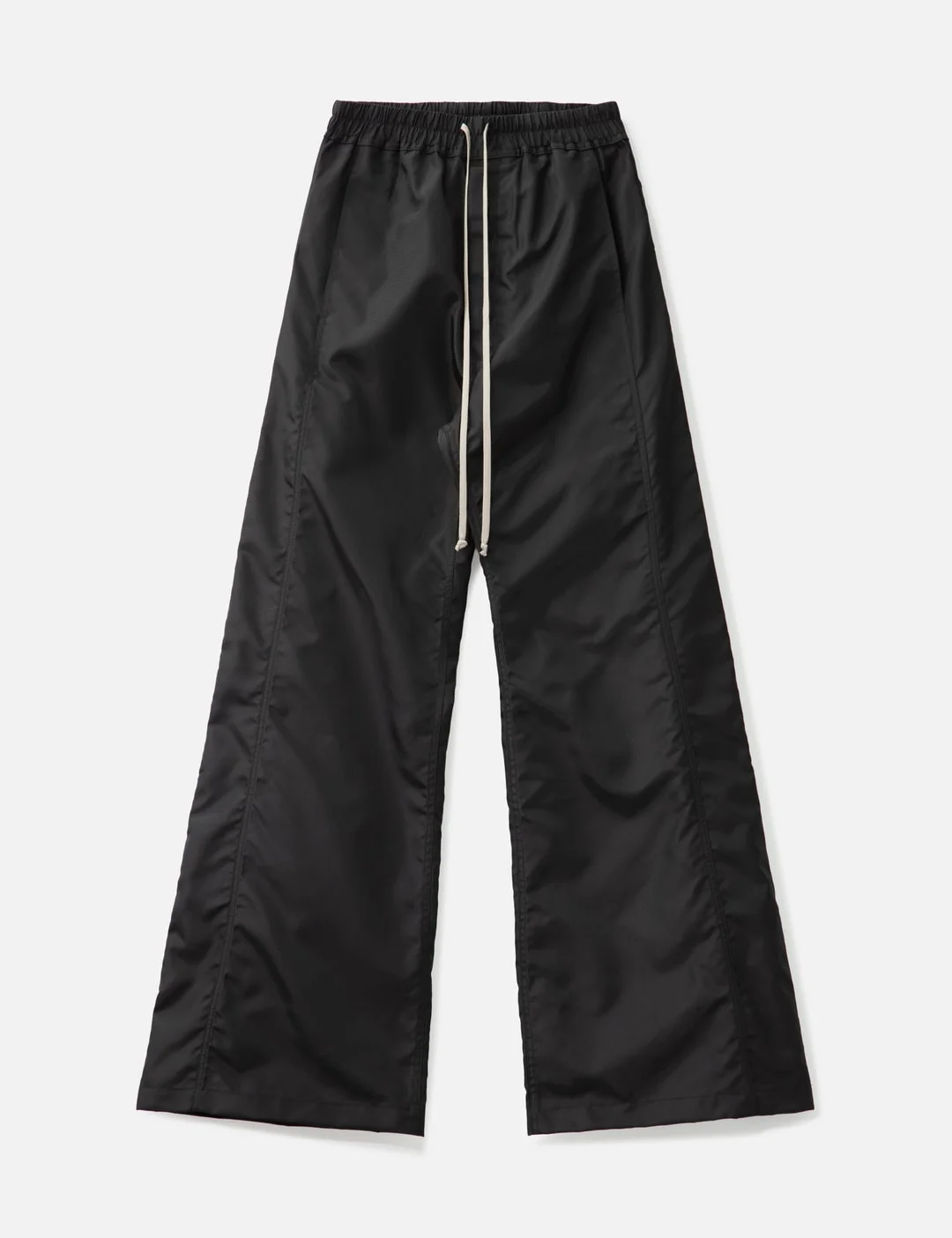 - Rick Owens Drkshdw - Wide Pusher Pant - Made of mediumweight nylon canvas - Grs certified recycled nylon used - Floor length - Wide leg - Slightly dropped crotch - Elastic waistband with drawstring - Side front jet pockets - Square back pockets with topstitching - Visible snap closures running down the outer leg - Color: Black - Material: 100% Nylon - See more Pants and Clothing - Model wears size M - Model measures: Height 186cm, Chest 34”/86cm, Waist 28”/71cm, Hip 36”/91cm - Vendor Code: DU02E7393-NCV