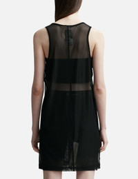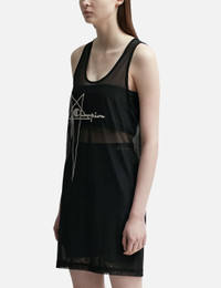 - Rick Owens - Rick Owens x Champion Mini Dress - Rick Owens x Champion collaborative collection - Stretch nylon fabric - Semi-transparent - Embroidered co-branding graphic at front - Round neckline - Reinforced seams - Color: Black - Material: 90% Nylon, 10% Elastane - See more Dresses and Clothing SIZING - Model wears size S - Model measures: Height 175cm, Chest 31”/79cm, Waist 24”/62cm, Hip 35’’/89cm